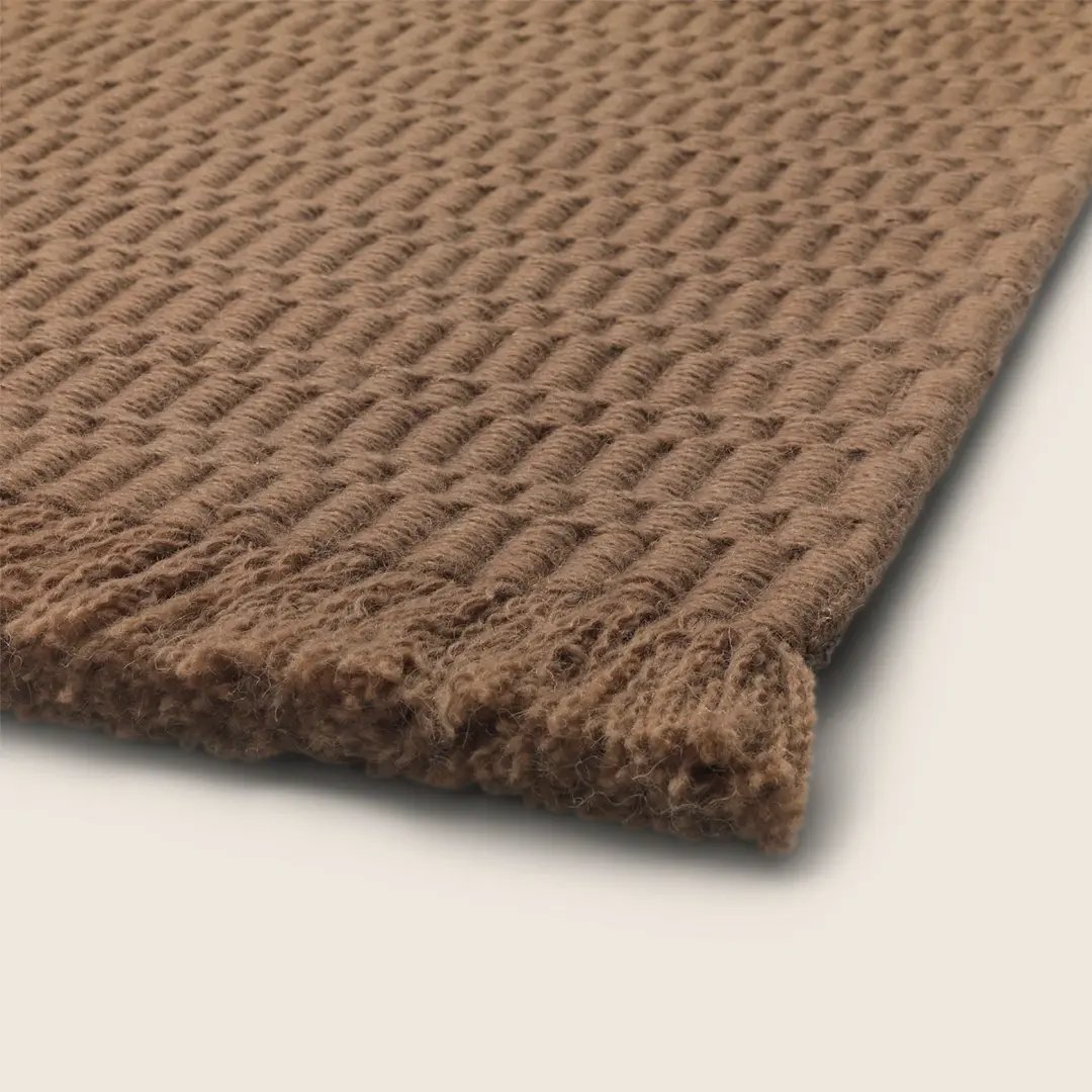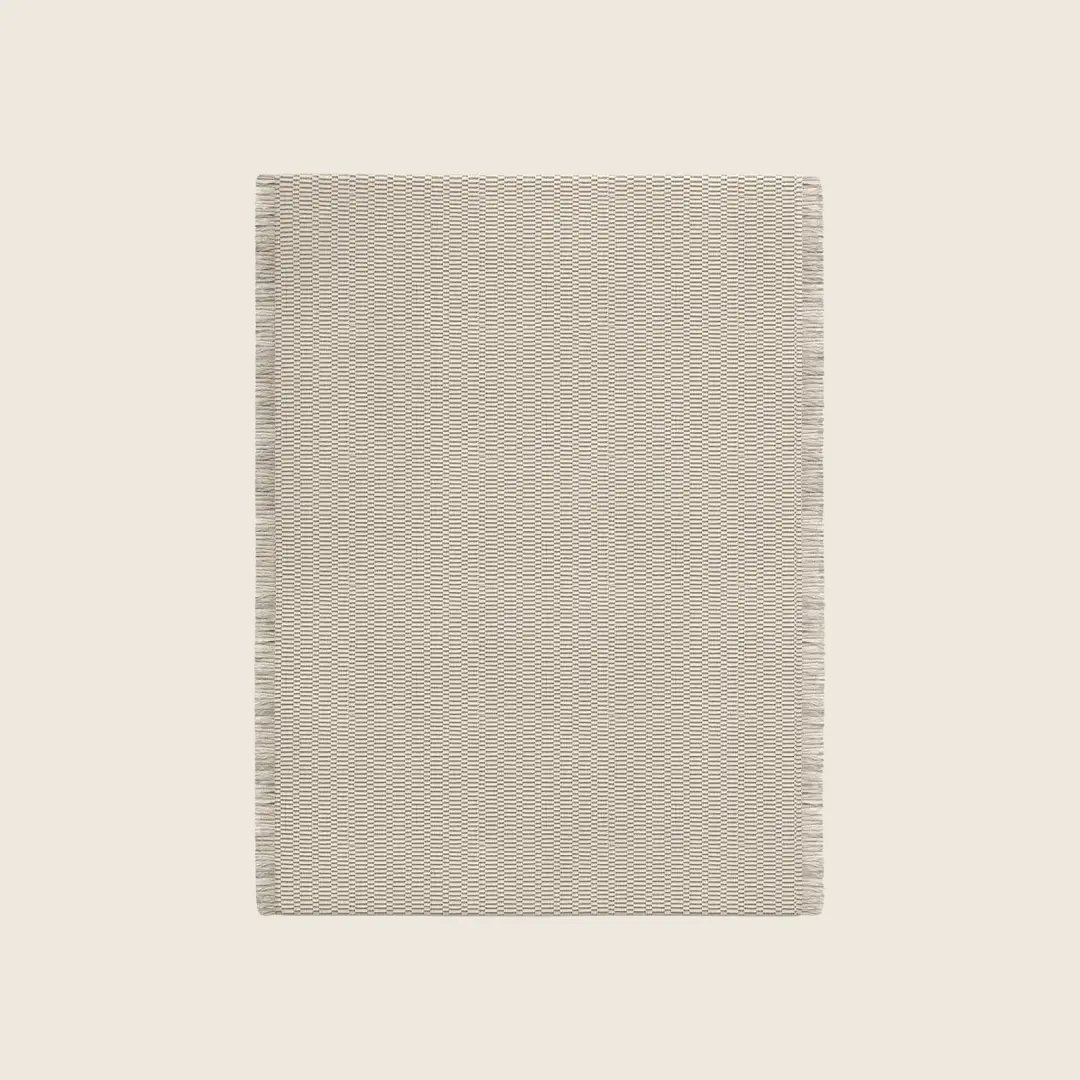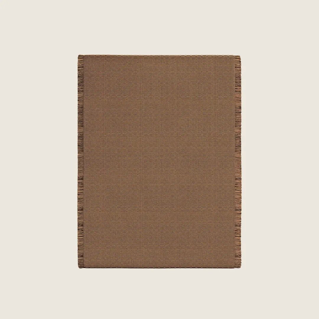 The Mori rug is inspired by two intersecting worlds – one of sophisticated contemporary European textile art, and the other of natural influences, made up of woven herbs moved by the wind, wheat stalks bound for drying. Tensions, knotting and constrictions that open into fringe, free and wild, characterize this rug hand-made from New Zealand wool and cotton.