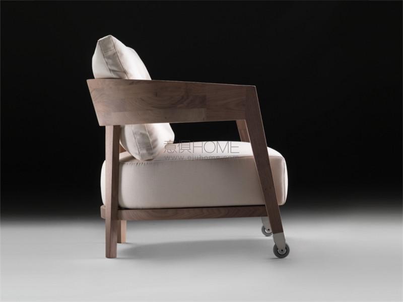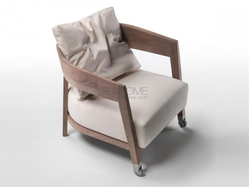 這款扶手椅造型優雅,比例節制,被設計為一款真正的百搭座椅,可裝飾任何家居環境,以及純粹的接待空間,例如休閑區,酒店大堂和酒吧。 溫馨舒適的結構呈半圓形,采用卡納萊托胡桃木實木制造,染成精致的顏色,配有實用的前輪,方便移動。 坐墊采用延展性聚氨酯制造,內部加入了木材插件,表面覆蓋雙層織物。 木質靠背帶有柔軟的鵝絨靠枕,增添了舒適感。 Caroline扶手椅可搭配Flexform系列的所有織物與真皮面料,散發同樣的優雅風情。