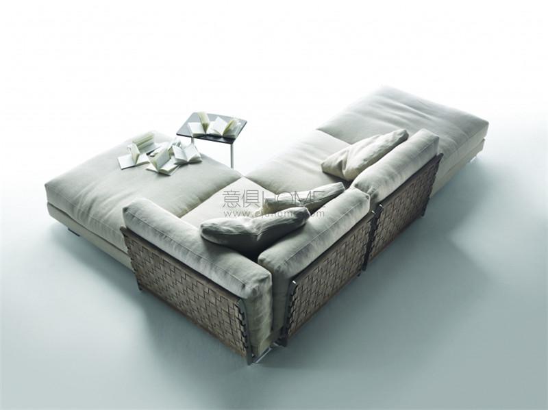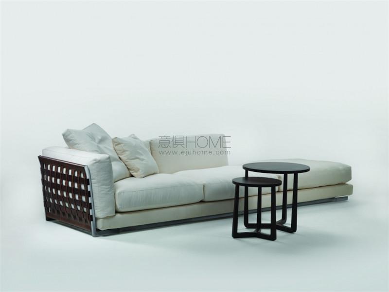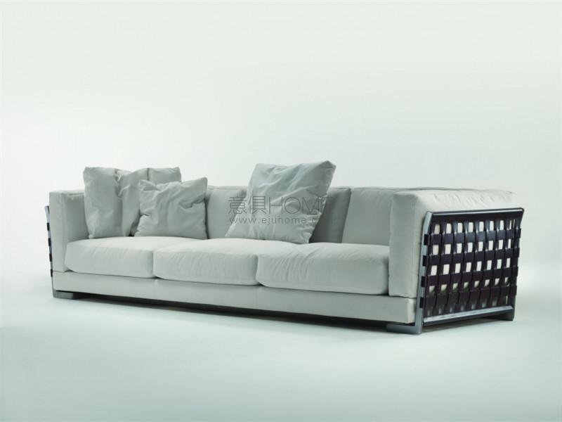 Cestone沙發(fā)被設(shè)計(jì)為客廳中央的理想擺設(shè)。 需要加強(qiáng)的是沙發(fā)的背面與側(cè)面,這些部分通常不具有特別顯要的特點(diǎn)。而在Cestone沙發(fā)身上,背面和側(cè)面均由金屬框架構(gòu)成,表面覆蓋著編織皮革。不規(guī)則紋理編織有兩個(gè)款式可選,采用了兩種不同寬度的皮條。編織可以更密實(shí),形成緊致的表面,也可以更疏松,隱約露出填充料的覆蓋面料。