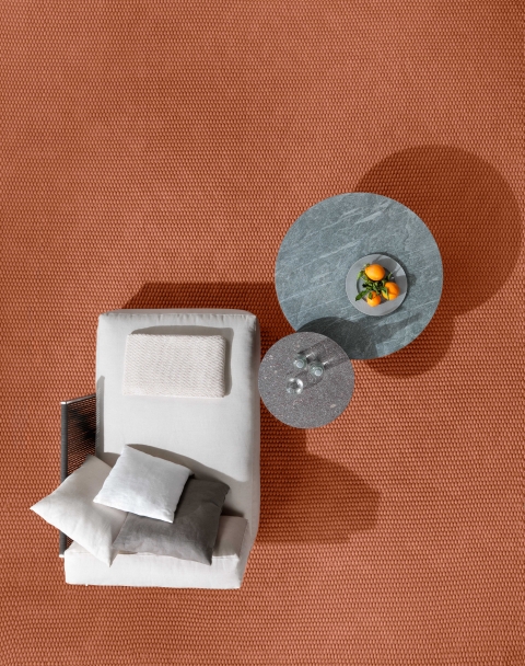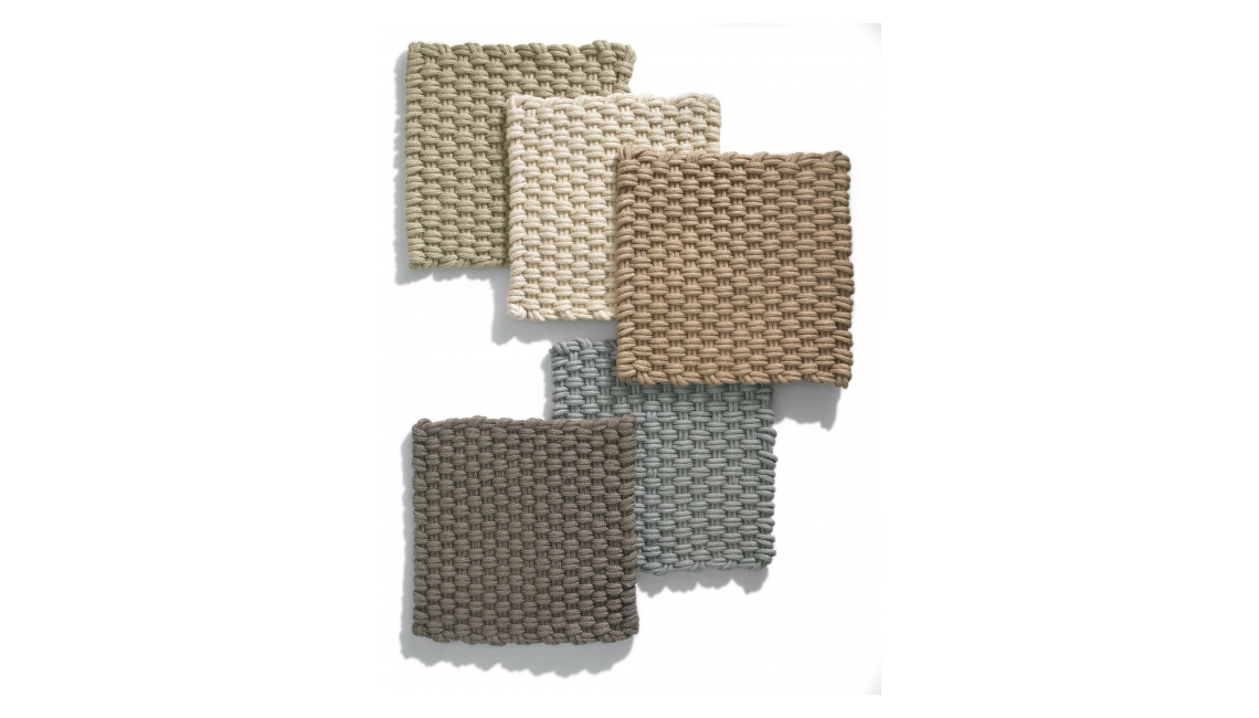 Colorado地毯采用特別的手工編織塑料制作,這種材料來自PET塑料瓶的循環再用。這是一種防水透氣的材料,使得Colorado地毯可放置于戶外環境,例如陽光房和露臺。Colorado地毯為定制產品,該系列具有多種顏色,可與戶外系列的織物顏色一致。