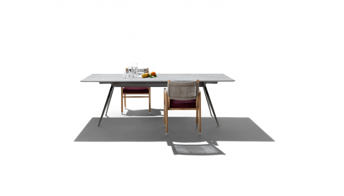 Zefiro午餐桌帶有輕松的當代感,如今推出了戶外版本,提供多種尺寸和表面處理工藝,彰顯其廣泛的百搭性。 纖細的壓鑄鋁材桌腿表面涂層為環氧粉末噴漆,可選白色,卡其綠,酒紅色,磨光及磨砂鋁材。 桌面提供多款精致的戶外石材,包括:銀色Beola石,火山石,卡多灰沙石,斑巖。 Zefiro Outdoor系列還包括了不同尺寸的茶幾,可搭配戶外系列的新款沙發和扶手椅。