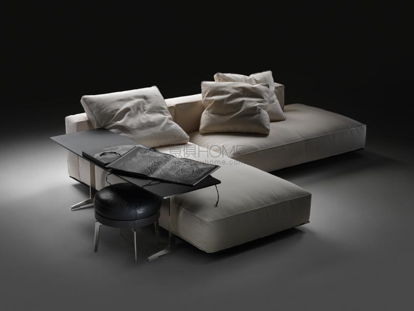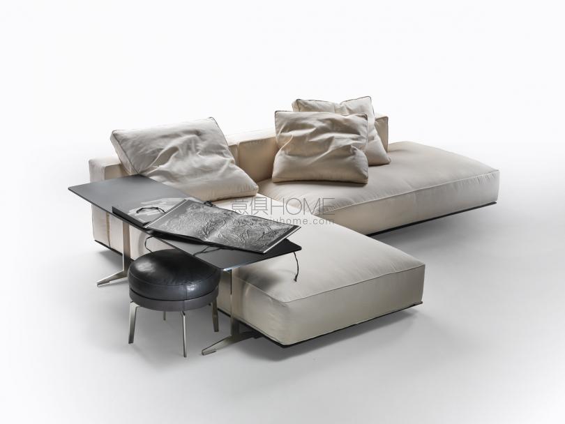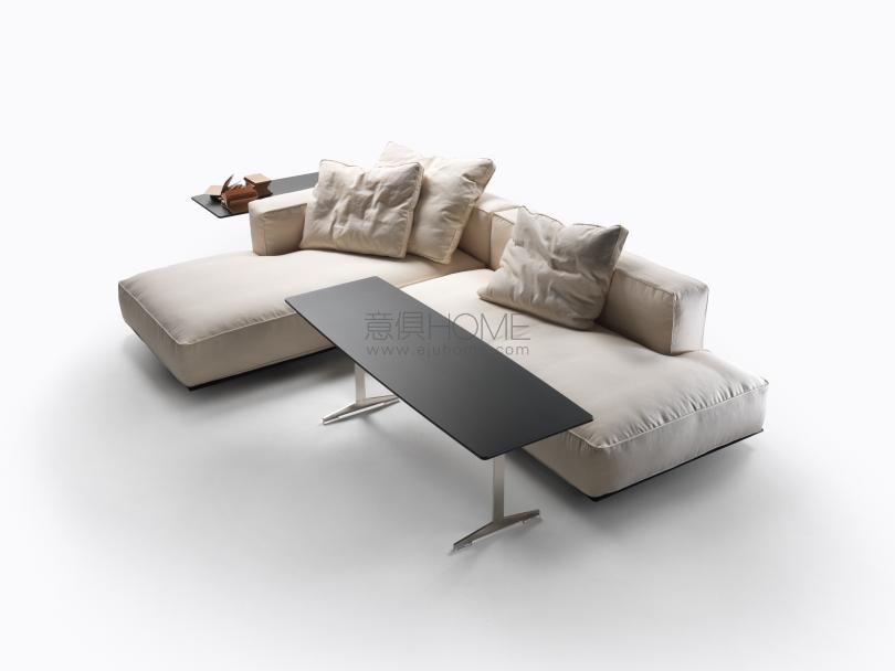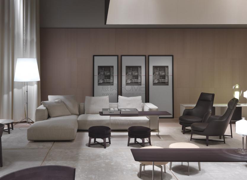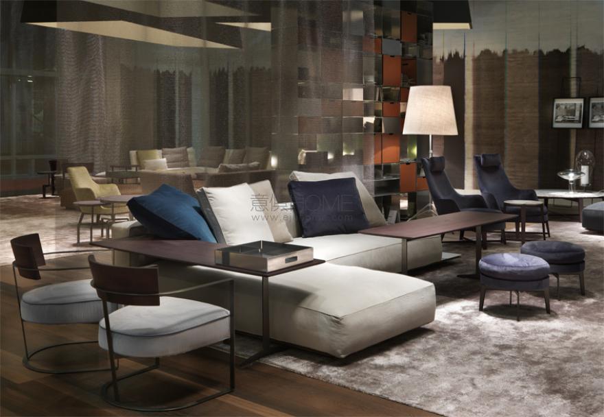 Grandemare沙發秉承低調的設計理念,但采用了豐富的設計方案,包括隱藏式的方案,使之呈現出卓越的品質。 它組合了不同的幾何體,柔軟全無棱角,放置在一塊表面覆蓋皮革的木板上。 座椅、扶手與靠背的覆蓋面料邊緣帶有一道羅緞輪廓,可采用同色或撞色對比。 金屬邊框經過環氧粉末烤箱上漆,相對于皮革平板位置更靠后,令Grandemare沙發呈現出懸浮的觀感。