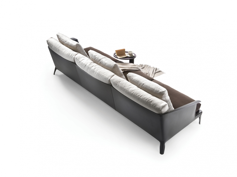 這款沙發的設計,取決于皮革這款高貴百搭的面料的內在表現力。 Isabel沙發內涵豐富,做工精細,線條簡潔洗練。靠背由一個包圍身體的金屬外殼構成,表面完全覆蓋皮革,構成扶手的延伸,扶手兩端略向外打開,在皮革表面形成輕微的皺褶,令人聯想起日本的折紙藝術。 Isabel沙發的特點是甜美優雅,由皮革搭配織物或真皮,可選擇同色或裝色對比,展現更鮮明的個性。