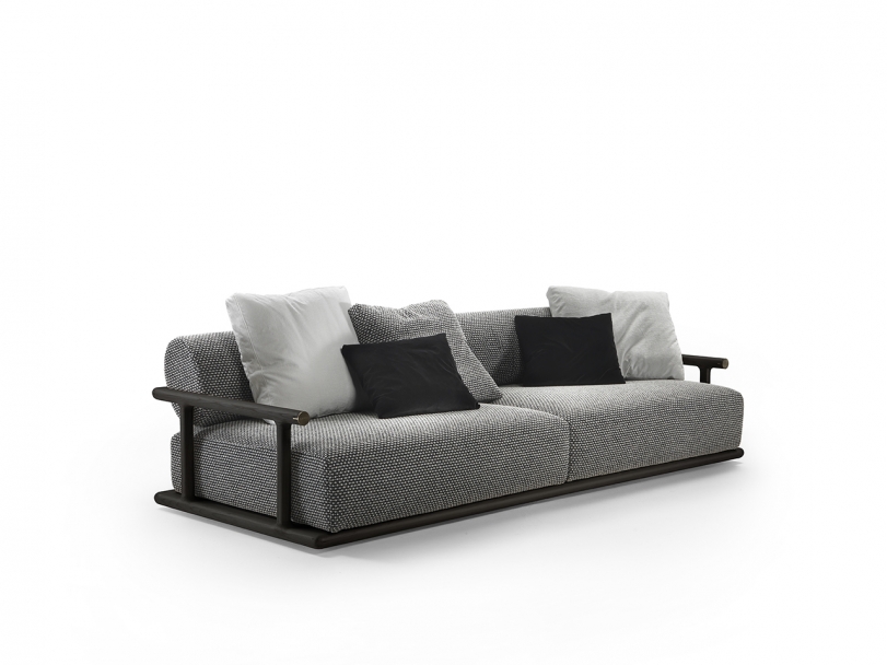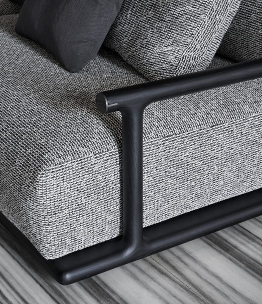 Icaro系列包括沙發(fā)、扶手椅、茶幾、床和多款其他配件。整個系列最具特色的標志,是精致的實木結(jié)構(gòu),遵循意大利木工傳統(tǒng)進行加工。Icaro沙發(fā)呈現(xiàn)出精致的裸露結(jié)構(gòu),采用圓潤的歐洲白蠟?zāi)緦嵞局圃欤善岢刹煌膬?yōu)雅顏色。坐墊直接放在實木底座上,靠墊則通過考究的沙發(fā)套同款面料扣眼固定在實木結(jié)構(gòu)上,沙發(fā)套是完全可拆卸的,有織物和真皮版本。