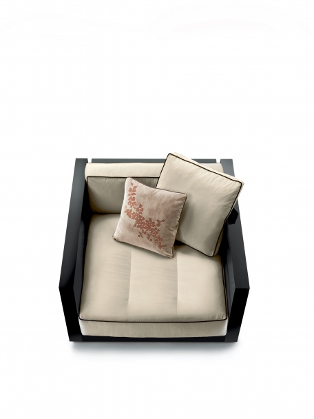 Lucien座椅系列如今加入了同名的扶手椅。 正如沙發一樣,Lucien扶手椅的靈感也是來自現代主義的建筑,扶手與靠背外部的光亮漆面突出了其嚴謹線條與方正造型。 椅墊和靠墊的鑲邊采用對比色,添加個性,突出了扶手椅的幾何設計。