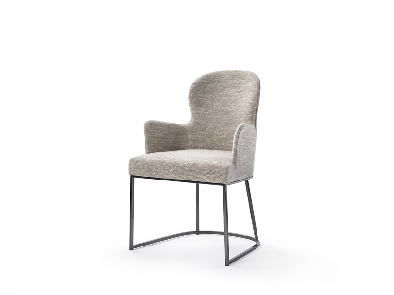 以現(xiàn)代手法演繹復(fù)古風(fēng)味,成就了You午餐椅和小扶手椅。扶手椅靠背線條優(yōu)雅,向下延伸形成扶手。You椅子做工考究,椅套帶有羅緞鑲邊,可采用同色或撞色對(duì)比。 You椅子有兩個(gè)款式:一款風(fēng)格更傳統(tǒng),帶有歐洲白蠟?zāi)疽瓮龋善岢刹煌伾硪豢铒L(fēng)格更具當(dāng)代感,具有簡(jiǎn)潔的金屬底座,表面處理有磨砂、鍍鉻、黑鉻、磨光、鍍銅或香檳色可選。