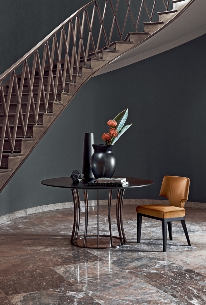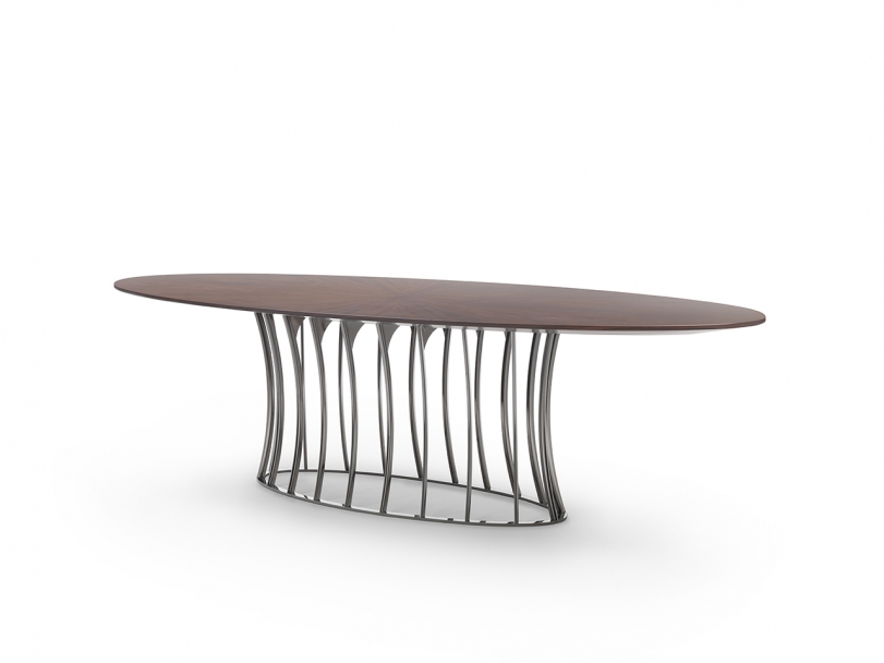 Arthur系列包括桌子與茶幾,空靈的金屬底座設計考究,承托起圓形或橢圓形的臺面。 造型性感,表面處理工藝豐富多樣,Arthur桌子展現出令人眼前一亮的個性特點,金屬底座與臺面可呈現不同的組合,底座表面處理工藝有磨砂、鍍鉻、黑鉻、磨光、鍍銅和香檳色,而桌面則有多種精致顏色的天然橡木款或名貴大理石款。
