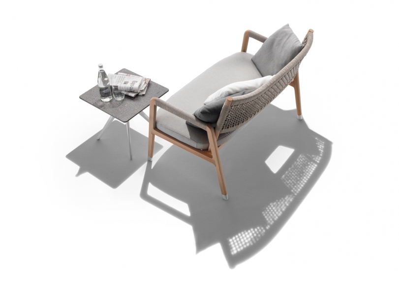 Ortigia Outdoor系列擴展到包括沙發。它優美的線條和緊湊的比例使它用途廣泛,非常適合中等大小的露臺或門廊以及招待場所。