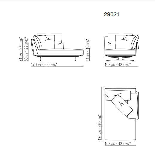 The roomy seat and backrest cushions are generously padded and feature elegant details – like the grosgrain piping – that contrast with the exquisite simplicity of the metal armrest clad in cowhide, available in an array of colors or in suede.