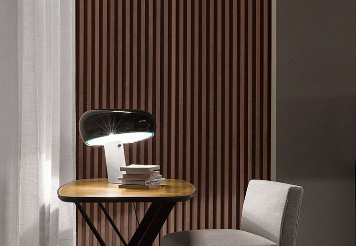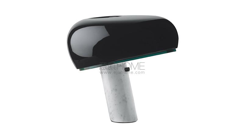 Table lamp giving direct light with enamelled metal reflector and white Carrara's marble base. It was designed by Achille e Pier Giacomo Castiglioni in 1967.