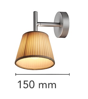 Wall sconce providing diffused lighting. Acid-etched pressed borosilicate glass internal diffuser. Plissé cloth shade. Gray painted die-cast aluminum diffuser and lamp support. Gray painted, injection-molded polycarbonate wall fitting and rose.
