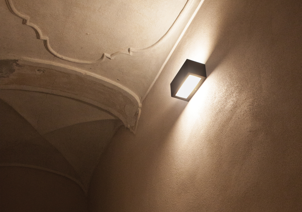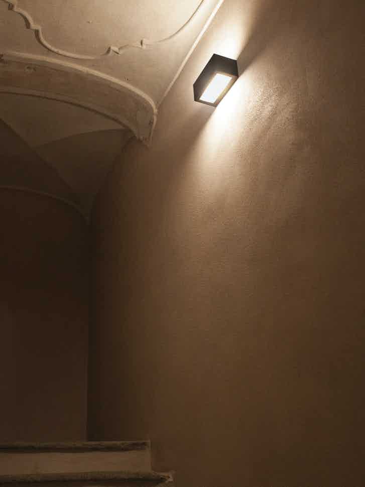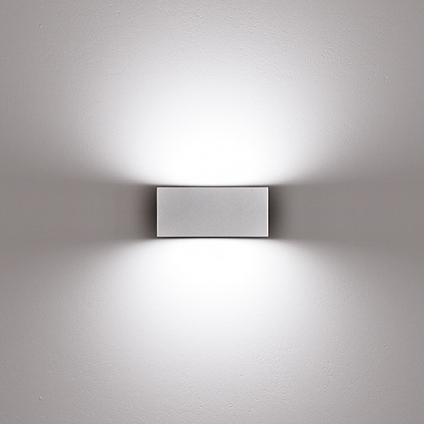 Rectangular luminaire for wall installation, available for both mono-directional and bi-directional emissions.Textured polycarbonate diffuser for a diffused light emission.