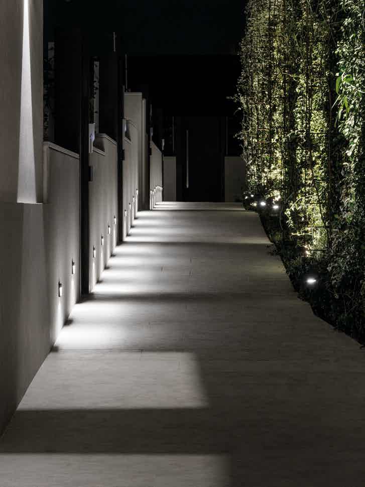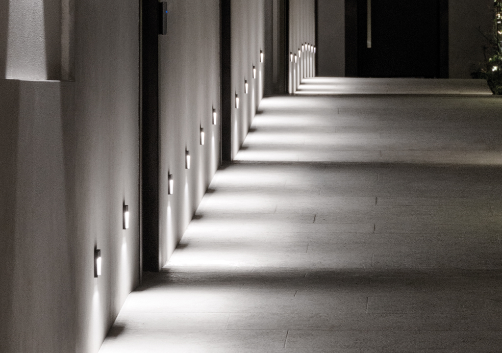 Rectangular or round luminaire with reduced thickness for wall installation. The power supply unit can be installed in a remote position (no box required) or housed behind the luminaire using an optional, 3-module box (model 503).