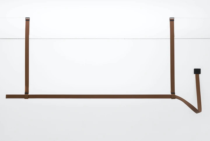 Belt vaunts pure flexibility thanks to a sinuous line whose nature is in balance between the softness of leather and the rigidity of aluminum.