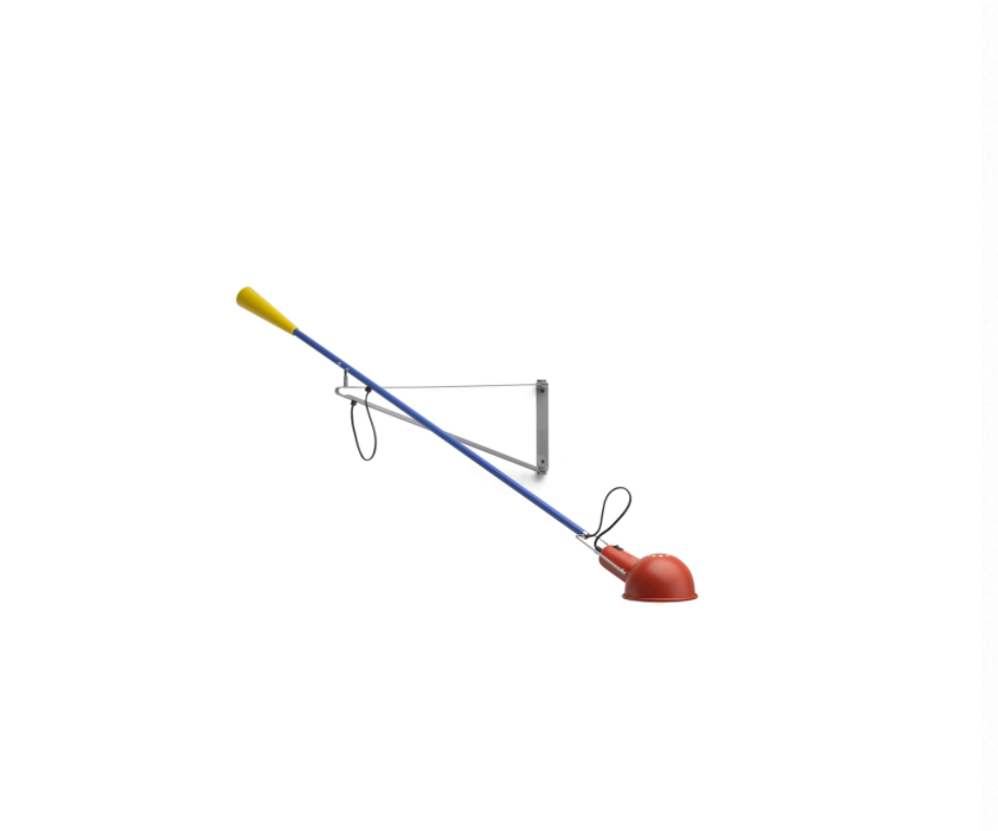 Wall lamp providing direct light. Painted steel adjustable arm and reflector. Chrome-plated brass reflector support. Cast iron tapered counterweight. Painted steel wall fixture.