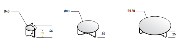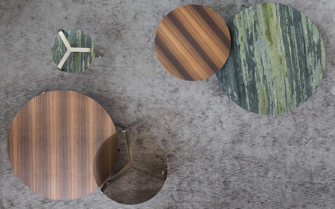 小桌的底座部分為鋼材,面板直徑不同,可放置于各種沙發(fā)旁邊。