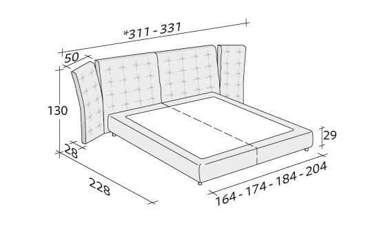 雙人床,十分優雅,床頭分普通型和屏風式。床頭板帶可拆卸軟襯,可選用皮革或布料包覆。