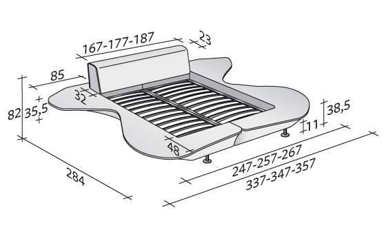 風(fēng)景雙人床。 舒適的“Memoform”軟墊床頭板,白色棉質(zhì)枕套。 成型的側(cè)帶,可以充當(dāng)座椅和支撐表面。 完全可拆卸的面料、皮革或人造革罩子。 休息面隔板,可調(diào)節(jié)板條,嵌入式床墊。 可配圓形玻璃臺(tái)面。