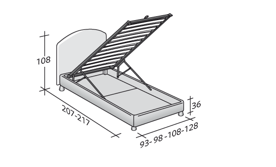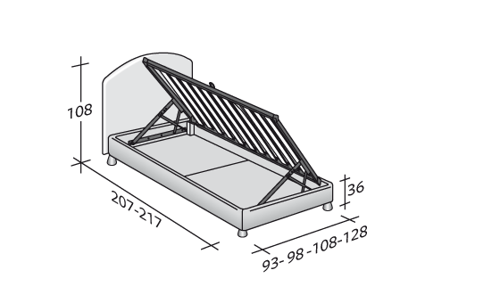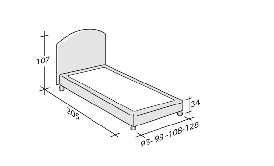 它的床頭板非常柔軟而且可拆卸,外部可選擇不同面料:布,真皮,人造皮. 底座可選舒適型 (comfort) 底座、高25cm的固定底座、帶儲物箱底座或電動床架.