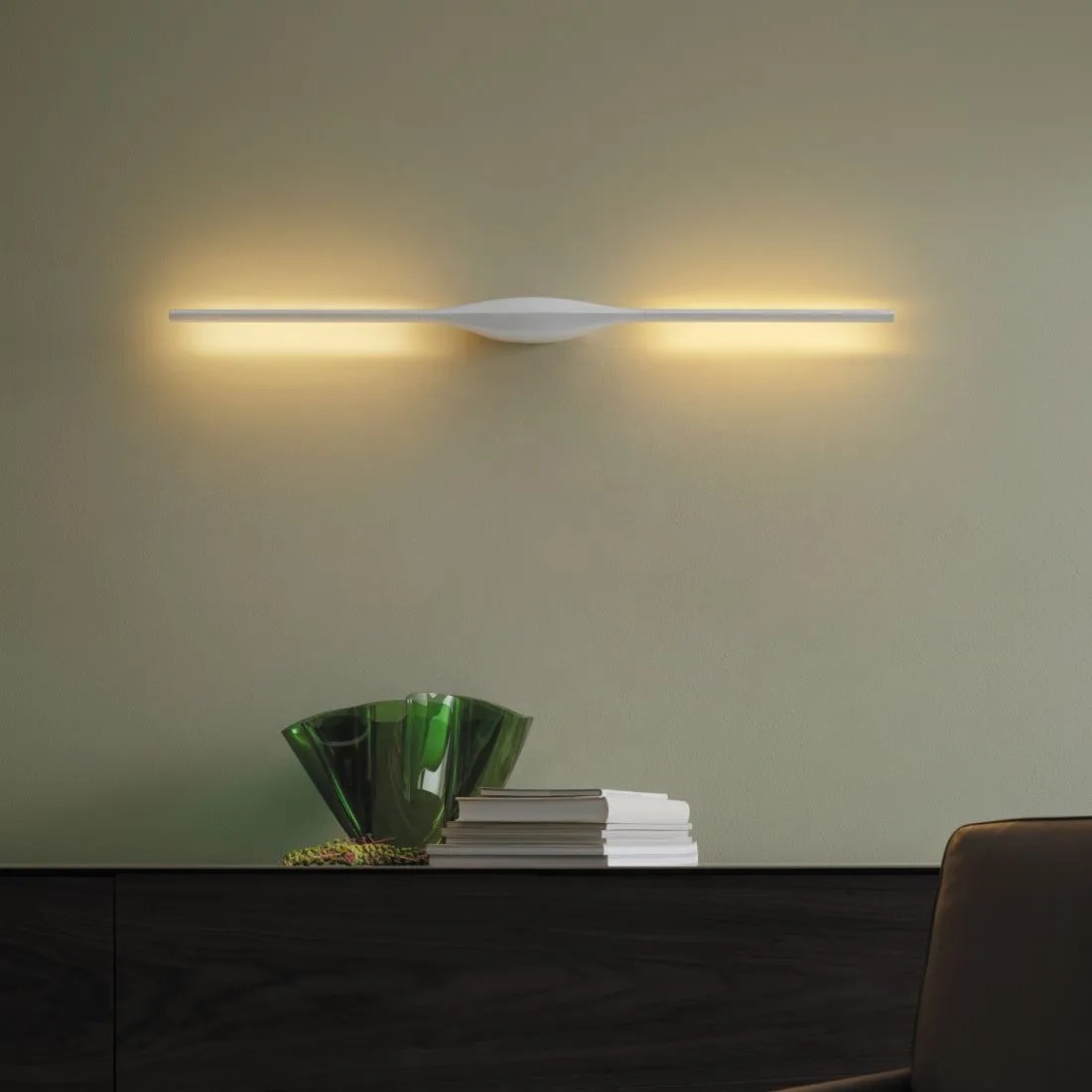 Apex è una lampada da parete caratterizzata da una linea affusolata ed elegante, il cui elemento centrale ricorda la forma di un occhio. La lampada si assottiglia verso le estremità quasi a scomparire nell’ambiente circostante, irradiando una lama di luce intensa e funzionale. Apex può essere installata in senso orizzontale oppure verticale.
