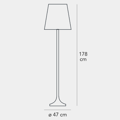 La più classica delle lampade da terra, provvista di una base che diventa, senza soluzione di continuità, uno stelo. Una lampada che arreda gli ambienti con stile e li illumina con accuratezza ed eleganza.