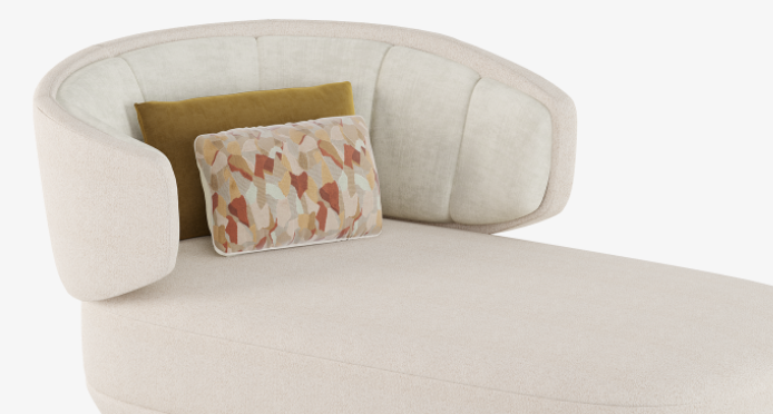 Building on the success of the COPENHAGEN armchair, this retro-futuristic chaise longue is as comfortable as it is unique. With its cocooning backrest and sumptuous upholstery, the laid-back design invites you to put your feet up in style.