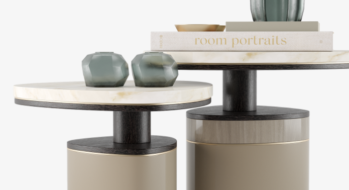 The ANTWERP design brings a fresh form to our double-volume side tables with its softly triangular surface and pedestal, while a palette of exotic veneer, lacquered gloss, brushed brass and smooth marble allows it to sit holistically within our wider collection.