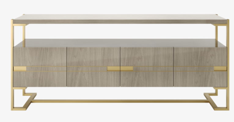 A distinguished combination of glossy wood veneer and brushed brass, the OTTAWA offers a mixture of open and closed storage, allowing you to conceal unsightly clutter from view while also showcasing favourite objets in a chic way.