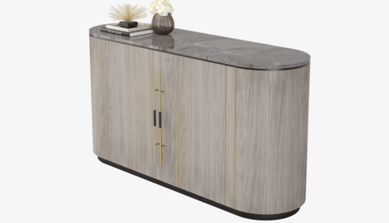 Featuring a glossy wood veneer structure, a smooth marble top and discrete handles, the understated elegance of the SALAMANCA sideboard quietly speaks volumes.