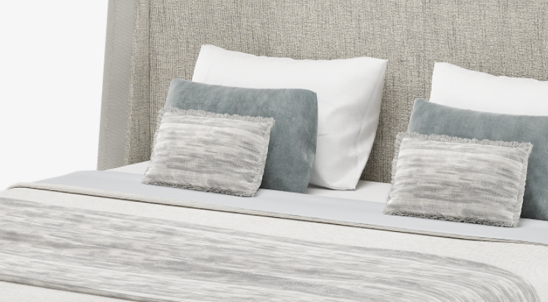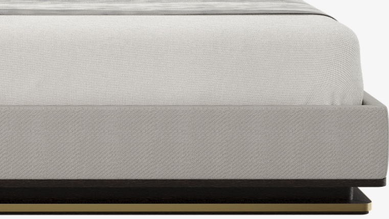 The FARIBAULT bed will be the centrepiece of your bedroom. Combining a statement linen headboard, satin wood features and brass accents, it commands attention.