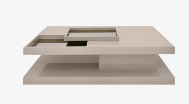 Inspired by modernist architecture, the lacquered wood SALDANHA Coffee Table includes a few surprises. The cantilevered surface, which incorporates a removable tray, hovers over the base and is braced by a recessed section that conceals a secret drawer.