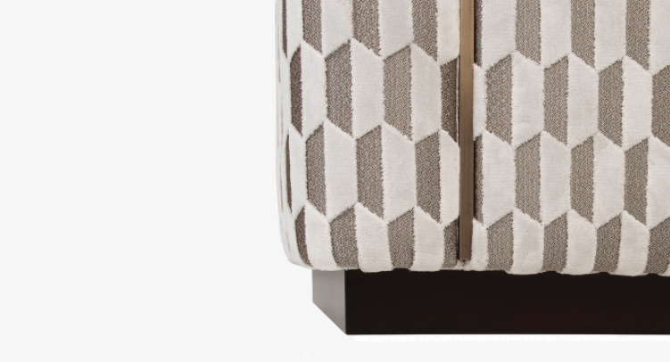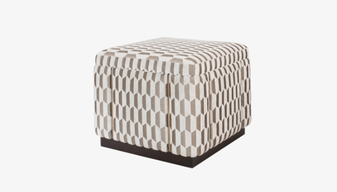 A simple cubic volume, the UBUD stool catches the eye thanks to its distinctive geometric upholstery.