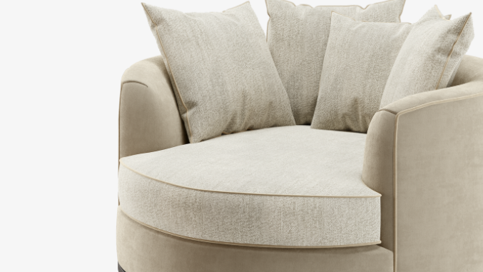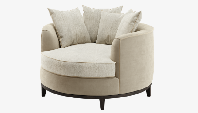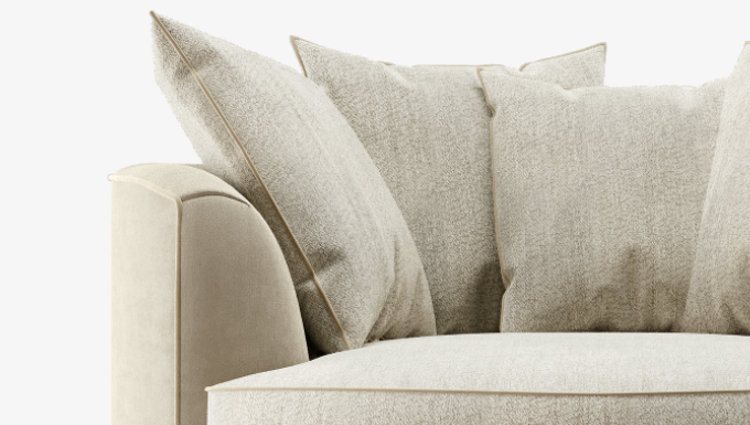 The loveseat-style KANSAS offers a different perspective on sofa design. A true circle filled with plump cushions, it invites you to curl up in absolute comfort. Signature design details include contrast upholstery and a solid wood base.
