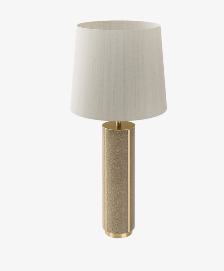 The desirable CLOS table lamp possesses an air of self-assurance thanks to its plentiful proportions and timeless good looks. A blend of brushed brass and textured leather