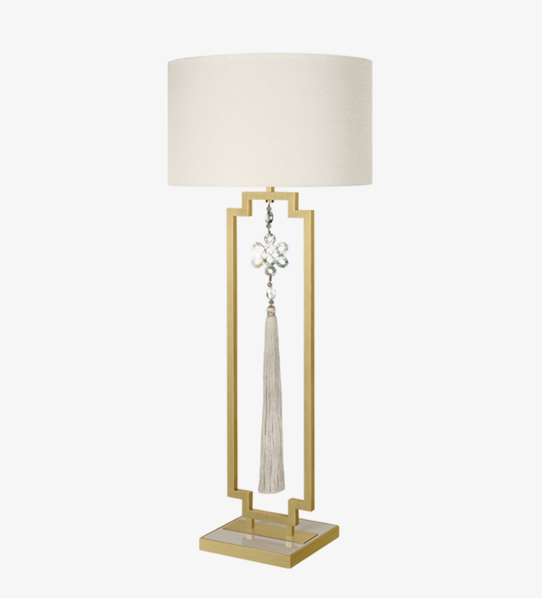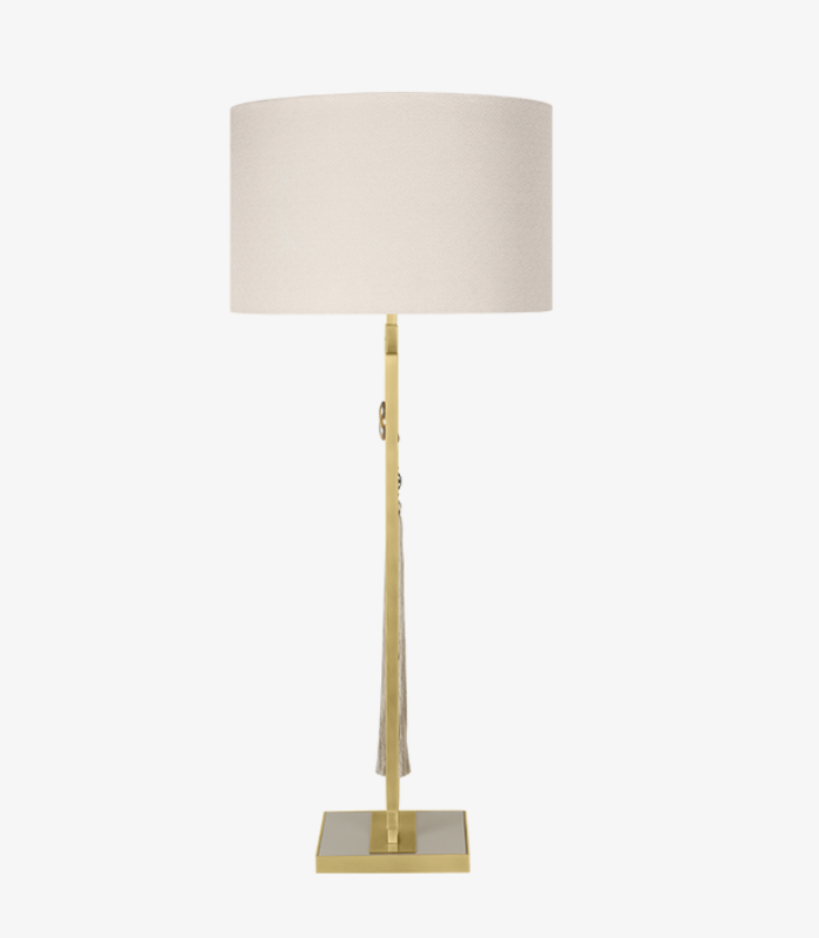Named after the vibrant capital city of Vietnam, the HANOI table lamp strikes an Oriental note that's in keeping with its glamorous moniker. Details include an ornamental pendant, brass and lacquered wood structure and double-silk shade.