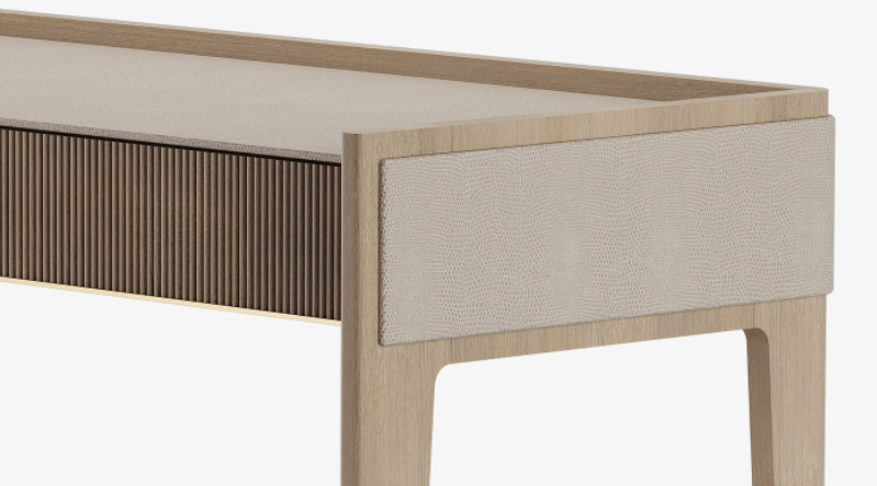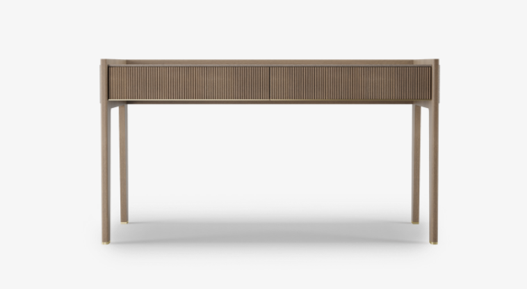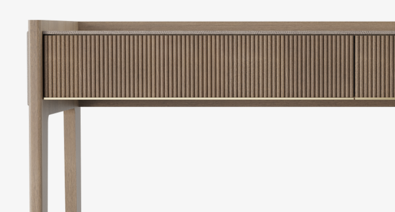 "The gorgeous HVAR desk celebrates the beauty of craftsmanship with artisanal details that feel quietly luxurious, such as the fluted wood veneer that fronts the design’s single, handle-free drawer. "