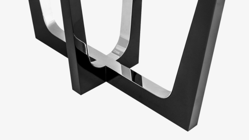 An intense combination of dark wood veneer and glossy black lacquer define the TRIBUTO console, while slices of light-reflecting polished steel catch the eye. Possessing an unmistakably smooth, aerodynamic quality, the design feels sleek and streamlined.