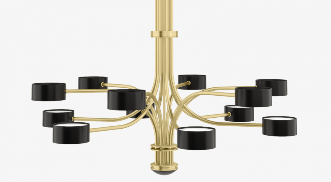 The intricate TAIF Ceiling Lamp’s 12 precisely positioned lights branch out from a central column. Made of glossy lacquer and inlaid with 5mm-thick opaline glass
