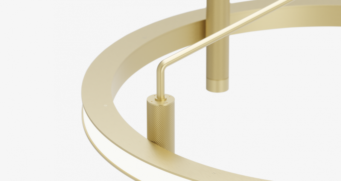 The refined TALLIN ceiling lamp takes a classic chandelier design back to its barest essentials for a highly minimalist take on a statement pendant light. Lustrous brass enlivens the lamp's purist form
