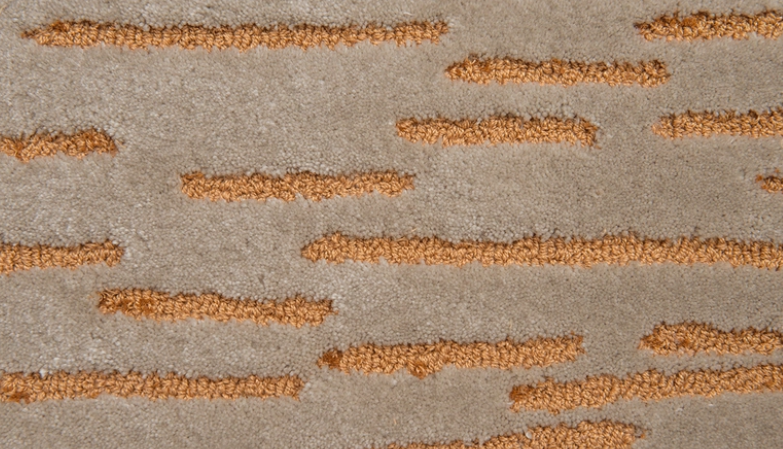 Subtle detailing shines in the design of the MALAGA botanical silk rug, which features a plush pile inset with burnt orange detailing.