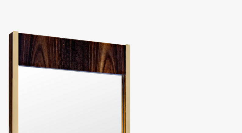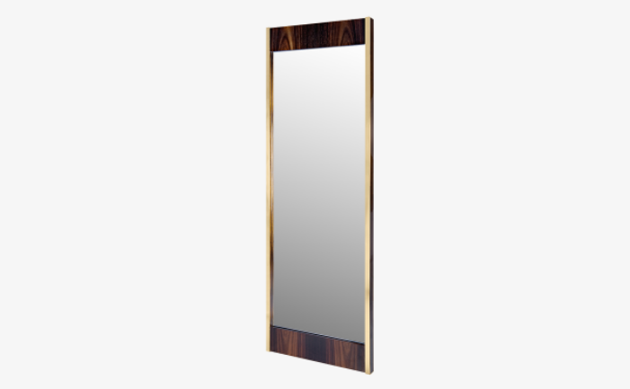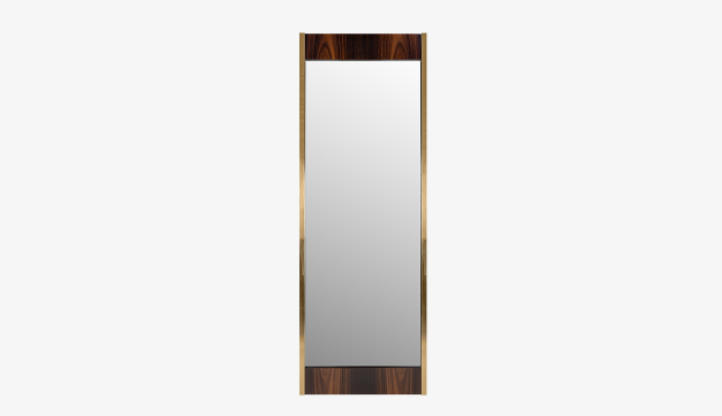 A clean-lined, full-length mirror, the glamorous PHOENIX measures a sizeable 2,000 millimetres. A chic frame of glossy wood veneer and brushed brass encloses a rectangle of clear glass, which will reflect light and make your space appear more expansive.