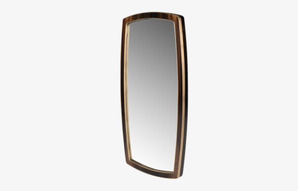 A shapely, mid-length mirror measuring 1,000 millimetres in height, the beautiful TRIBUTO is subtly inspired by the stylings of mid-century modernism. Made from glossy dark wood veneer edged with seams of brushed brass, this quietly characterful design is a joy to behold.