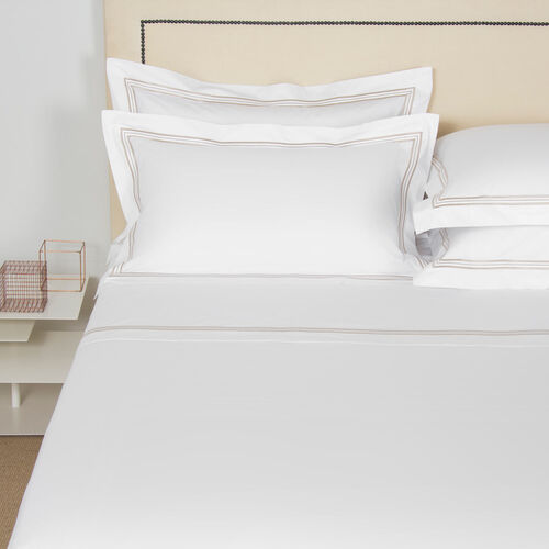 Soft and smooth with high shine, the Triplo Bourdon Sheet Set is crafted from pure cotton poplin - the perfect balance between percale and sateen - and embellished with a three-line embroidery.