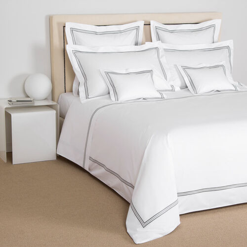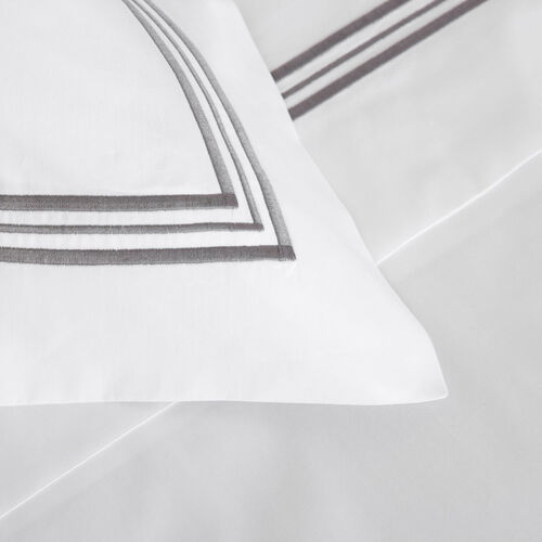 Soft and smooth with high shine, the Triplo Bourdon Sheet Set is crafted from pure cotton poplin - the perfect balance between percale and sateen - and embellished with a three-line embroidery.