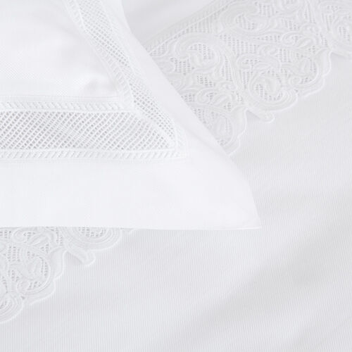 The Ornate Medallion Embroidered Sheet Set features silky smooth long-staple cotton sateen. Its elegant embroidery effortlessly blends in with every bedroom interior. Transform your nightly routine into a luxurious escape with this silky smooth fitted sheet. This sheet set includes a top sheet, a fitted bottom sheet, and two shams. 100% cotton. Made in Italy.