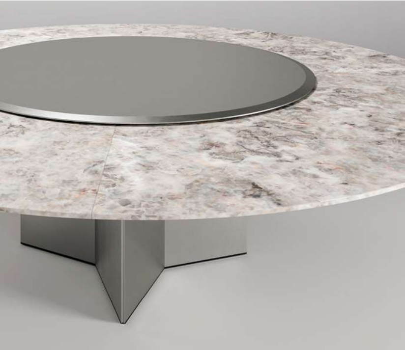 table with wooden or marble top divided into four sections and 10 mm ratating glass plate.wooden base covered by 6mm tempered glass.