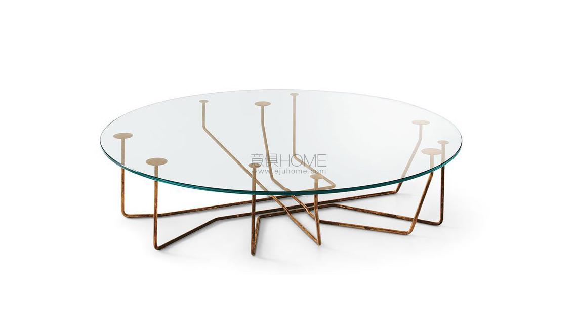 Coffee table with 12mm extralight tempered glass. Structure in hand burnished brass. The hand burnished brass finish looks naturally spotted and irregular. Due to this craftmade processing, each product is unique and exclusive.