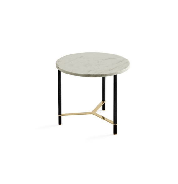 Coofee table with VerdeAlpi, Calacatta Vagli Oro or Bianco Statuario marble top. Available also with inlaid wooden top in the finish "Colore" Frisè Waalnut or in Maple Frisè dark grey. Black hand brushed anodised aluminium and bright brass structure.