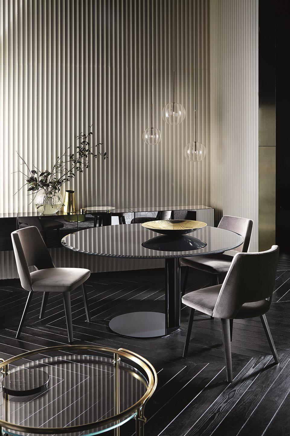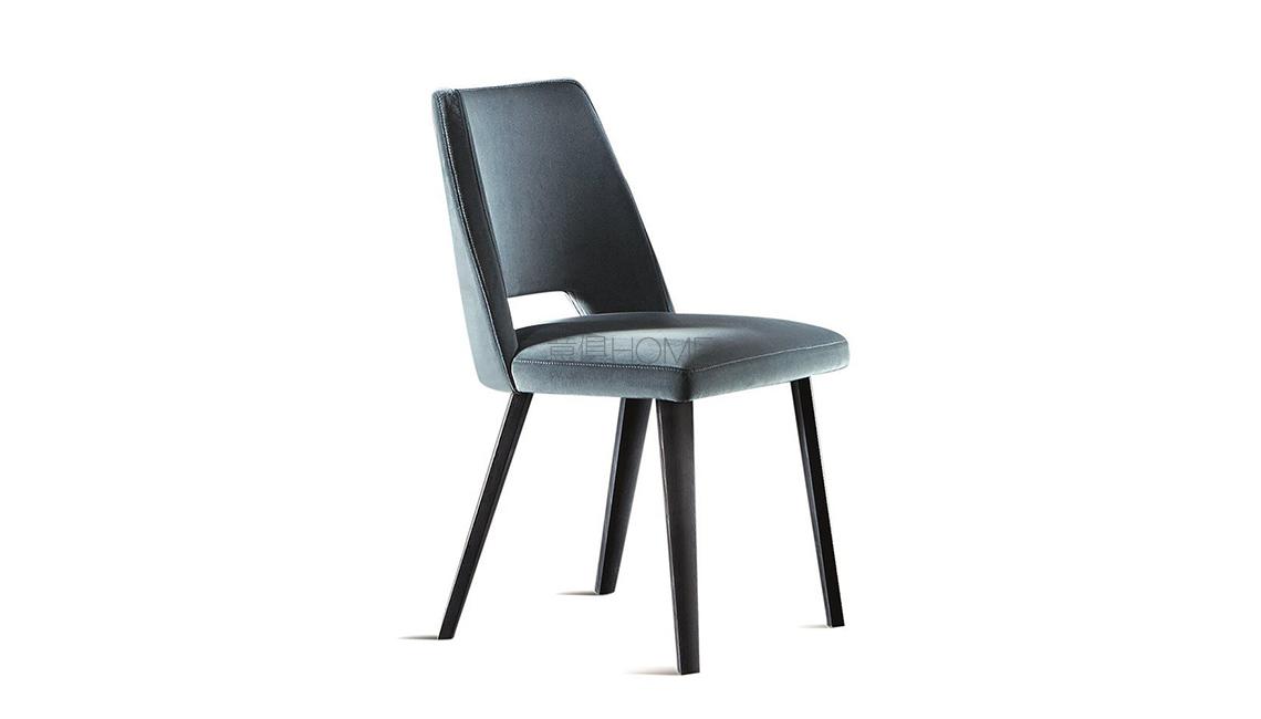 Chair with seat and backrest covered by fabric or leather as per sample. Black (mod. Layer) open pore lacquered oak legs.