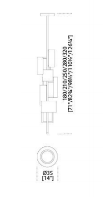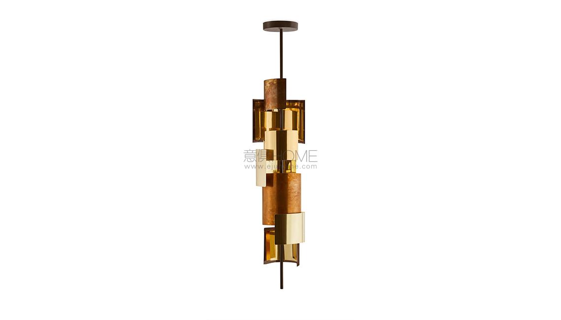Hanging lamp with LED light with black bronzed painted structure and bright, satin, hand-burnished brass and black chrome parts.